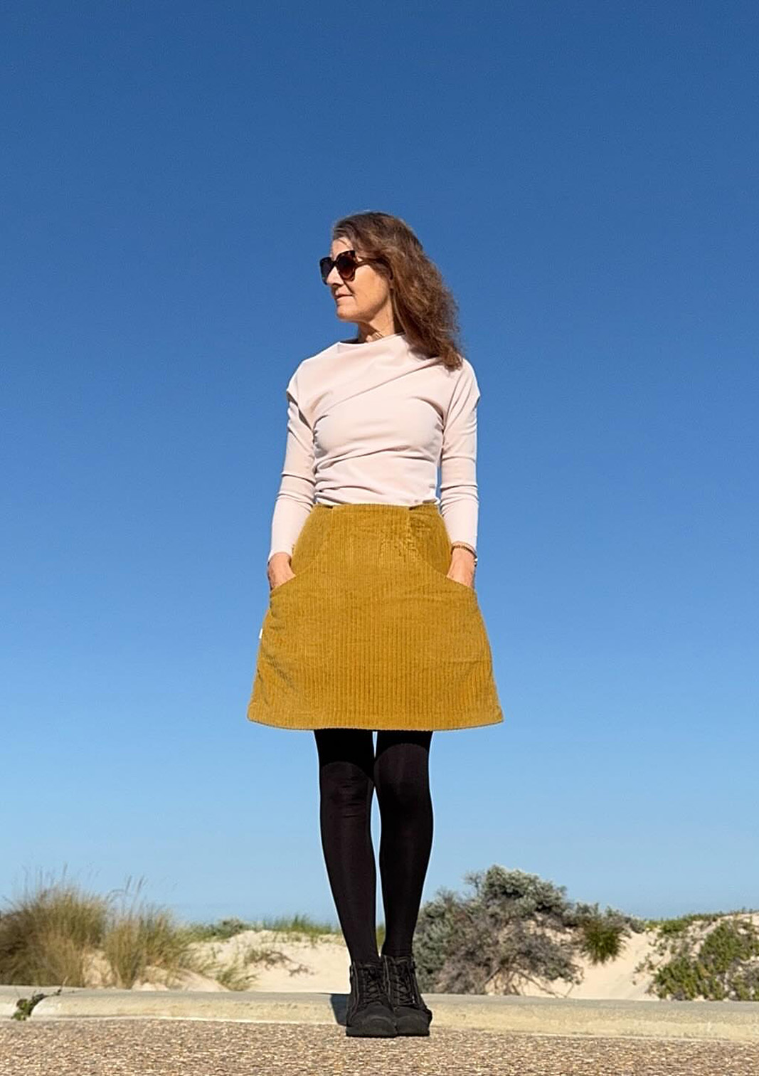 The Acacia is quite a streamlined design but the addition of simply ginormous pockets has brought it up to what must be the most perfect winter miniskirt pattern ever. I added 10cm in length to mine and found it very simple to make and it’s easy and comfortable to wear too. Basically, it’s a cute a classic little A-line skirt with those pockets really elevating IMO… such a great wardrobe builder and I will most definitely be making more!
