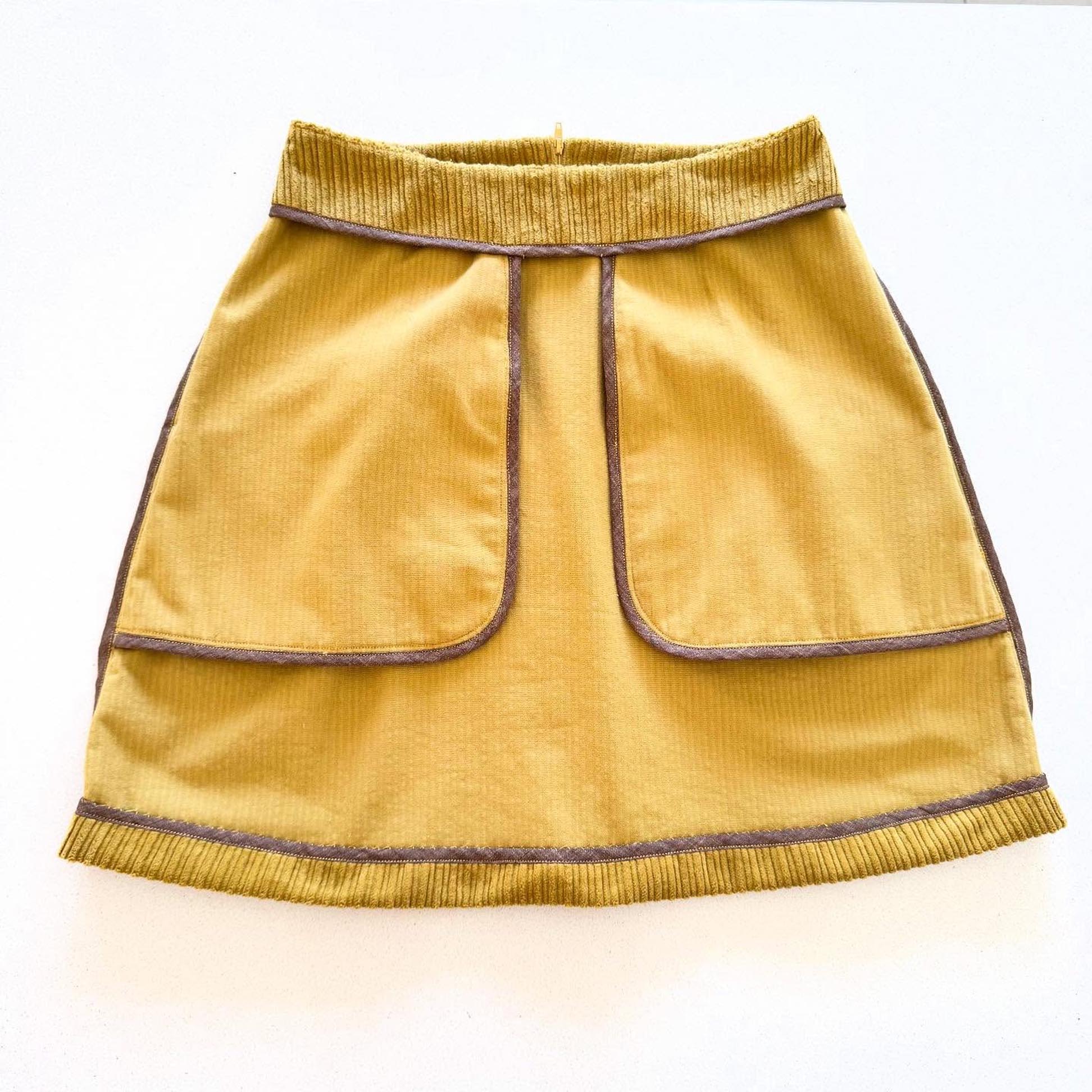 Our version of the Acacia was sewn using the Tollerton 100% cotton 9oz denim from Weft and Warp. We added contrast top stitching using Gutermann Professional Jeans Thread in Dark Gold 1970 for that classic look. Whilst our vision for the Acacia recommends heavier weight fabrics such as denim, corduroy and sturdy drills, with some simple tweaks (listed in the instructions) you can definitely opt for a lighter fabric for a fun and flirty skirt.