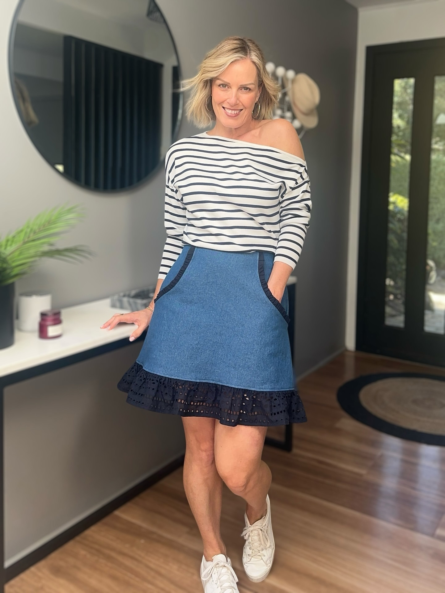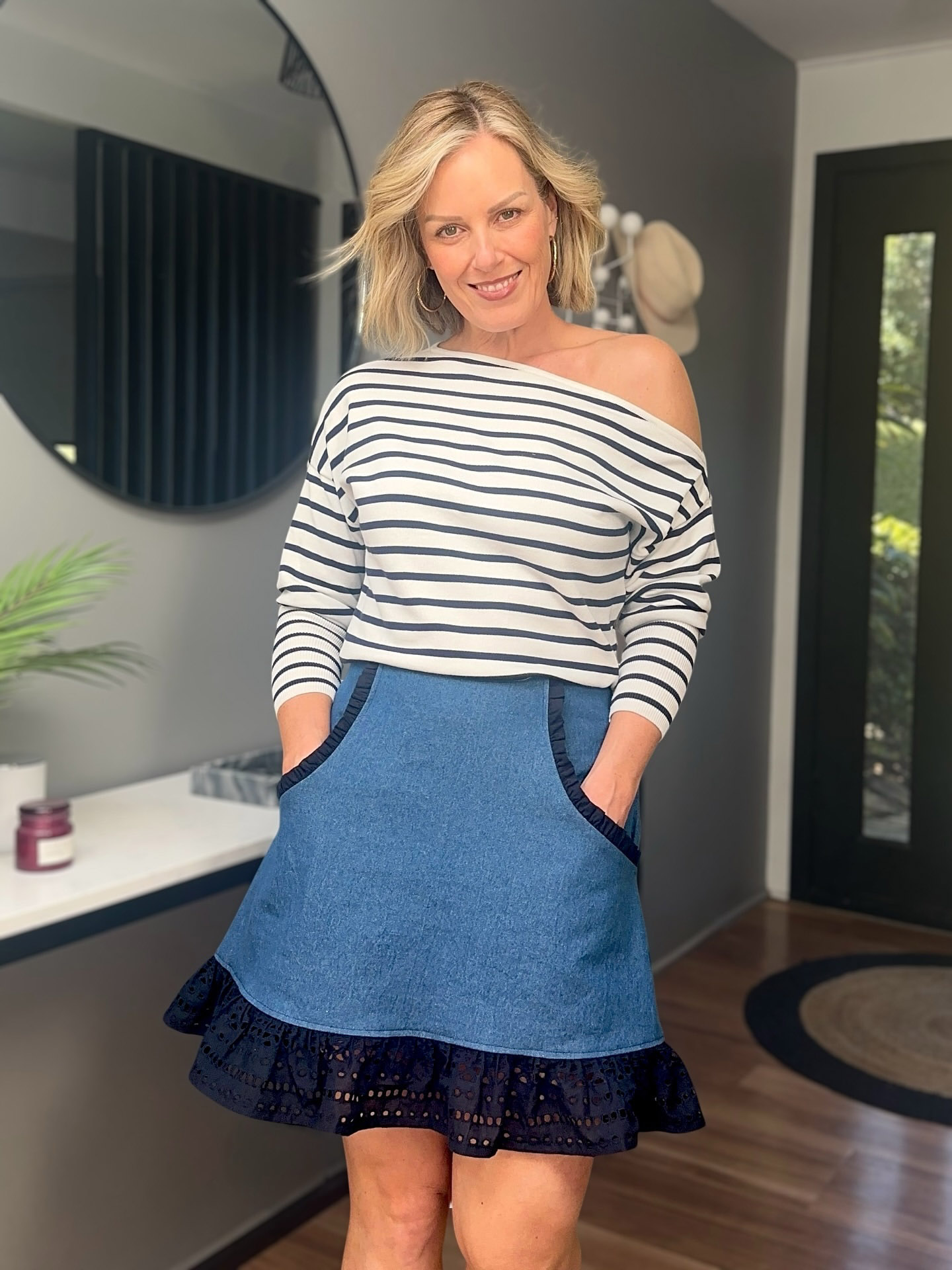 Did you know you can lengthen and make it a mini, midi or maxi? You do you! Whilst we’ve gone for a mini skirt style you are so free to lengthen this little beauty by simply extending the lines of the side seams as you desire. Our friends at Weft and Warp have made a handy video showing how to lengthen the skirt.