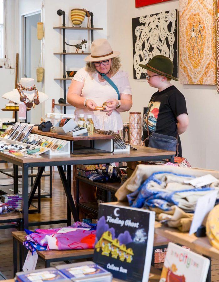For starters, try Aboriginal Art Co, a non-profit who promotes authentic and ethically sourced Aboriginal and Torres Strait Islander arts and products, or the Blak Business Directory by Ngarrimili. Look for sellers signed up to the Indigenous Art Code (IartC) to make sure that artists receive fair prices and profits are reinvested back into local communities. Indigenous Art Code’s search and map function can help you find businesses who support fair, transparent and ethical trade with Aboriginal and Torres Strait Island visual artists. There are so many options, from fabulous fashion and handcrafted jewellery, artist prints and ceramics, foodie treats and crafts. Every dollar spent should circulate back into First Nations economies, supporting self-determination, cultural knowledge holders and the next generation of Blak creators and business owners.