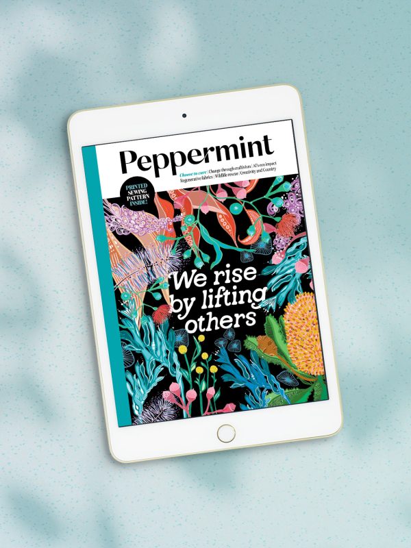 We rise by lifting others: this well-known quote from Robert Ingersoll is a saying we’ve used often here at Peppermint, since the early days. Surely the act of extending a hand to our friends and neighbours, known to us or not, is the true meaning of life? Ngarabul and Torres Strait Islander artist Lauren Rogers, who created the phenomenal cover for this issue, beautifully said, “Like the plants it honours, we thrive through care, community and connection. May this serve as a gentle reminder that in lifting each other, we all flourish.”