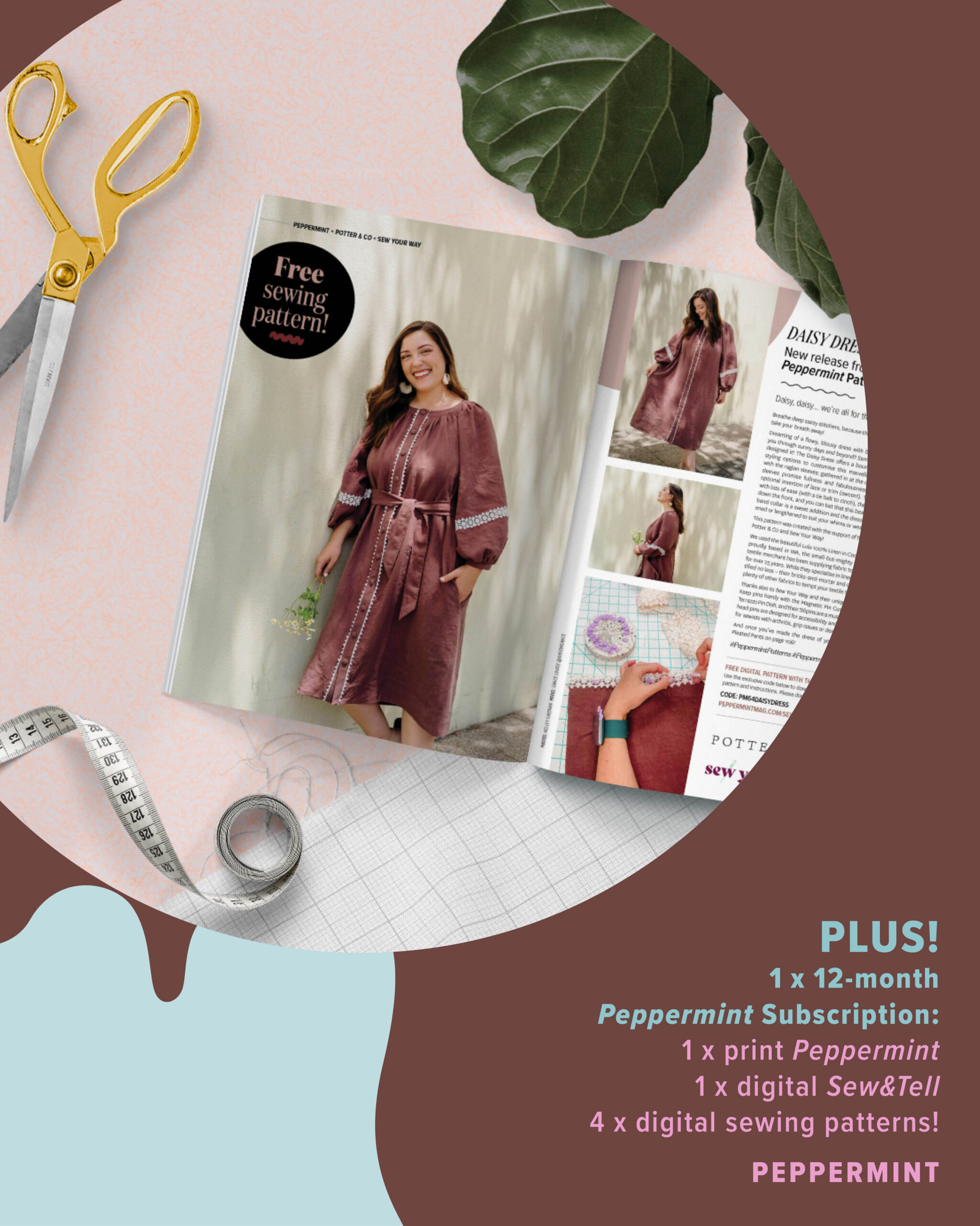 - 1 x 12-month Peppermint Subscription including: 1 x print Peppermint, 1 x digital Sew&Tell and 4 x digital sewing patterns!