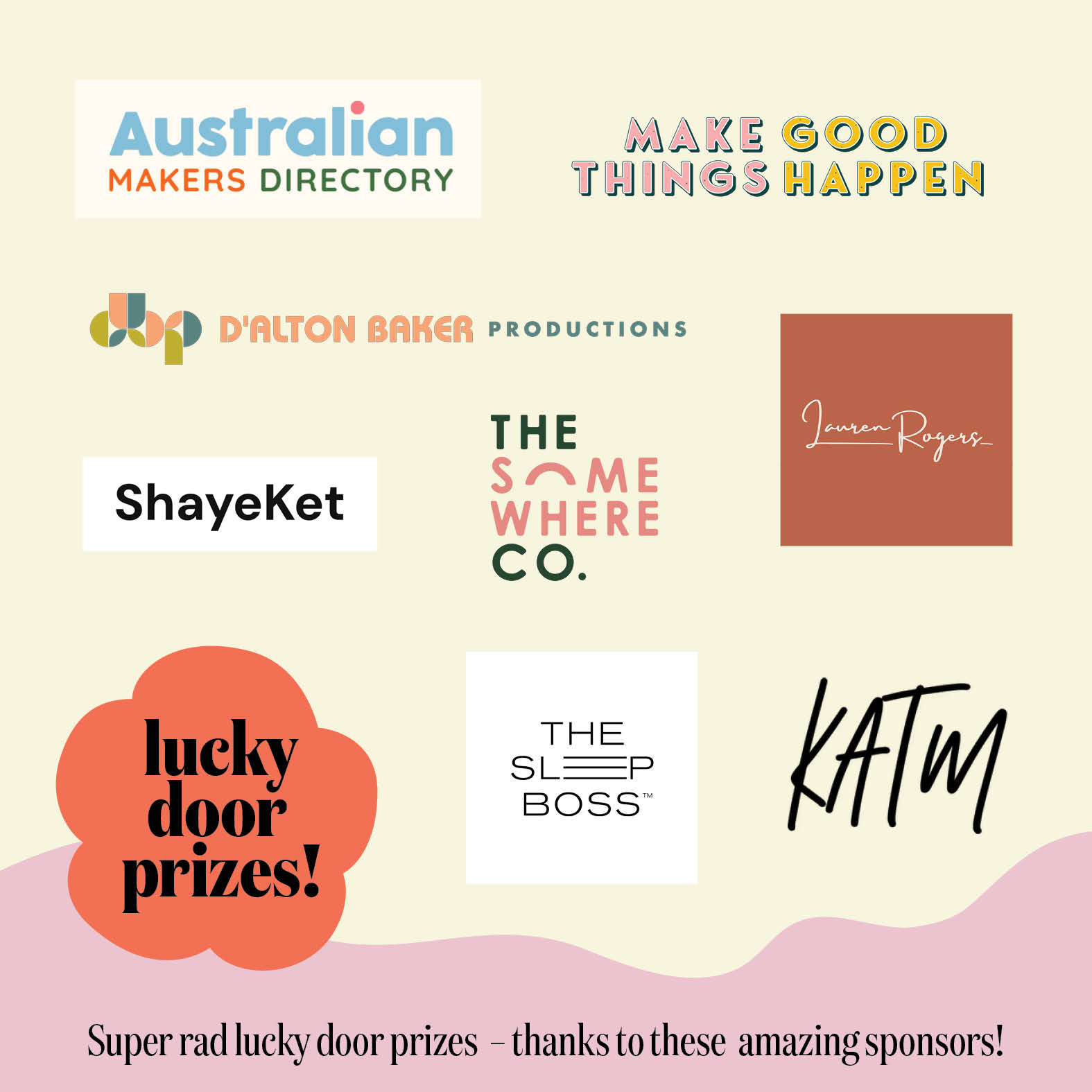 Plus the chance to win lucky door prizes from these gorgeous brands – an original artwork from Lauren Rogers, a merch pack of socks, pencils, patches from Kylie and The Machine, mending kits from Shayeket Productions, a picnic set from The Somewhere Co and a Luxury Sleep Oil Serum Gift Set from The Sleep Boss. Plus, there’s a fabulous prize pack up for grabs from the Australian Makers Directory for one lucky creative: 1 x 12 month membership to the Australian Makers Directory, 1 x 12 month membership to the Make Good Things Happen podcast AND a 45 minute website critique from Angela and Renée of D’alton Baker Productions, total value of $700!