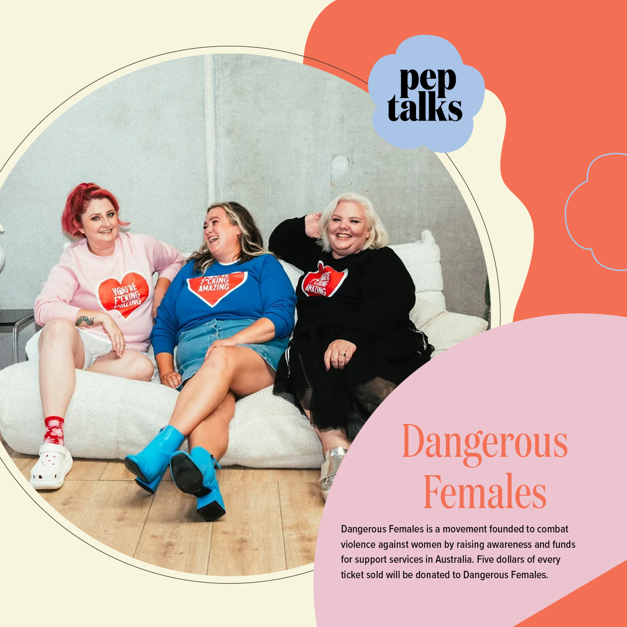 We are proud to say we are donating $5 from every ticket sold to Dangerous Females – a movement founded to combat violence against women by raising awareness and funds for support services in Australia.