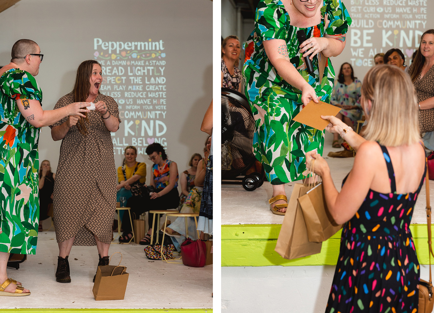 The lucky door prize draw was a time of great highs and lows, as everyone eagerly gripped their tickets and hoped for the best. Cheers and groans went up as we announced the ticket numbers, and it was a real delight to see the excited faces of the winners. Thank you to our partners ReMi Beauty, The Somewhere Co, Obus, Allpress Espresso, Thinking of You Gift (a spontaneous last minute prize!) and Echidna Sewing for bringing the joy!