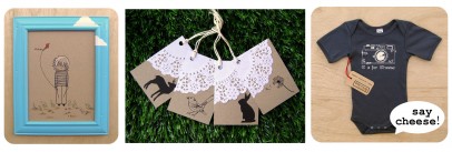 Little Muse goes by the saying, ‘made by two hands, born from one heart’ and creates ‘inspiring art for little people’, but we think their work is so divine we’d keep it for ourselves, or maybe drop some Christmas hints. Speaking of which, Little Muse has released a range of Christmas gift tags also available at their online store. All their products use vintage, recycled or organic materials, so I guess we could feel guilt-free hinting at how much we like the Illustration of Boy Vinnie in the recycled blue frame? *cough* Captain obvious? *cough*