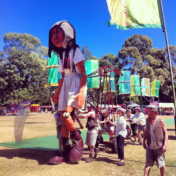 That was when I was allowed to leave the Kidzone. Needless to say the main part of our experience revolved around the Kidzone – it was a hard task extracting said six year old from the area set up to entertain the smallest festival-goers. WOMADelaide certainly does ‘family’ well – there was a high number of kids at the event, and the program for the littlies didn’t disappoint, including bouncy castles, a South Australia Museum tent with fossil explorations, art workshops, and ‘Tangle’ – an interactive experience where the kids weave a giant tangled mess of elastics on a purpose-built frame and proceed to climb and explore and disappear from parent’s sight (ahem). But the highlight according to my son was Boxwars where children were shown each day how to construct and decorate amour, hats, swords and shields from recycled cardboard – resulting in many a pint-sized battle carried out across the festival site by red-faced, sweaty, miniature knights in the sweltering 38 degree heat. The interesting part was fitting this unyielding costume into my carry-on luggage…